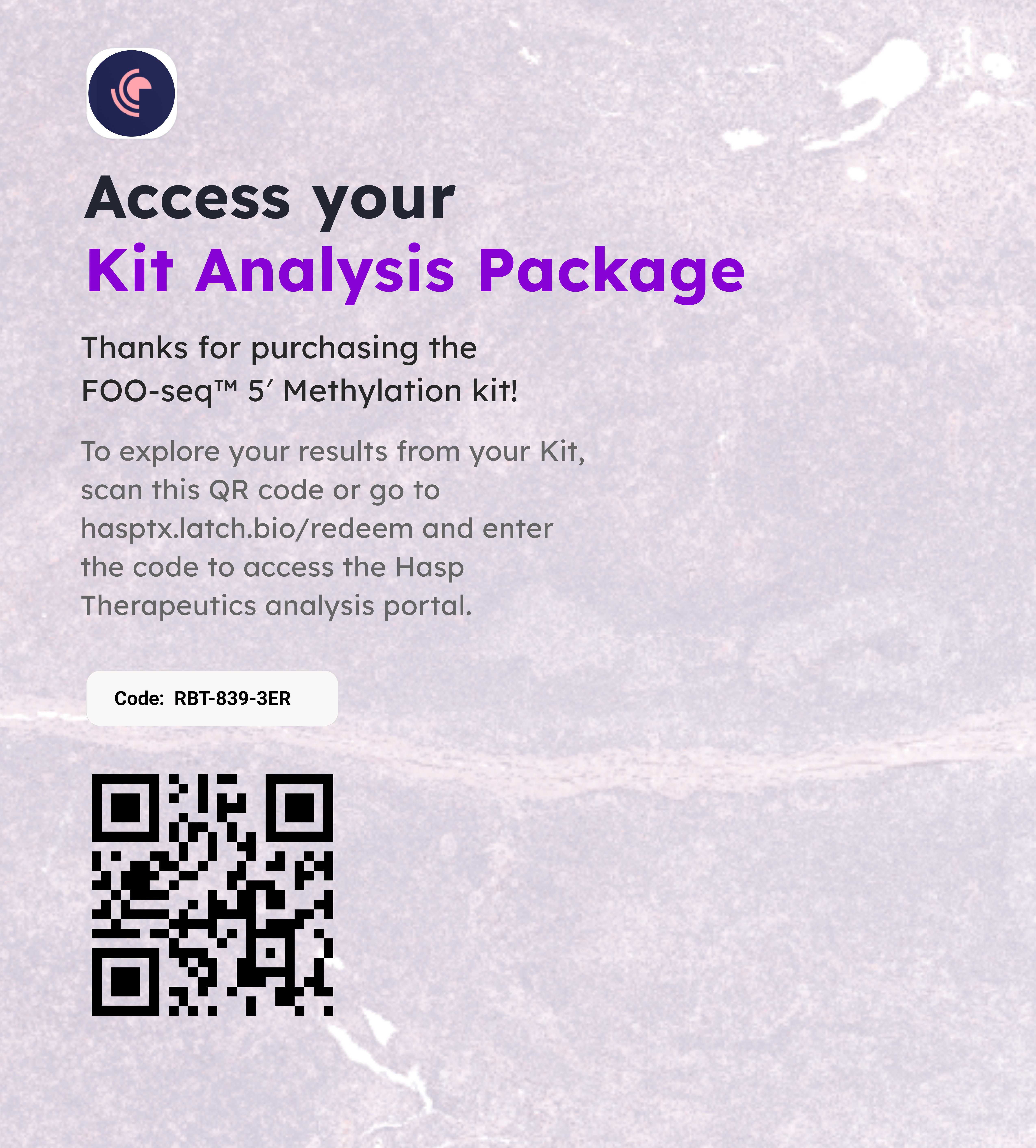 Kit providers create redeemable codes that can be embedded in QR codes or one-pagers inserted into each kit.