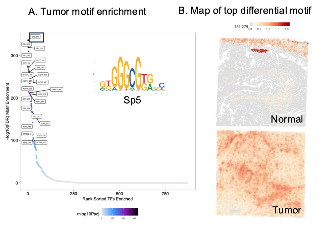 Additionally, comparing motif enrichment between tumor and normal tissues helps delineate how chromatin accessibility shifts contribute to tumor heterogeneity, highlighting the diverse adaptations of cancer cells to their microenvironment.
